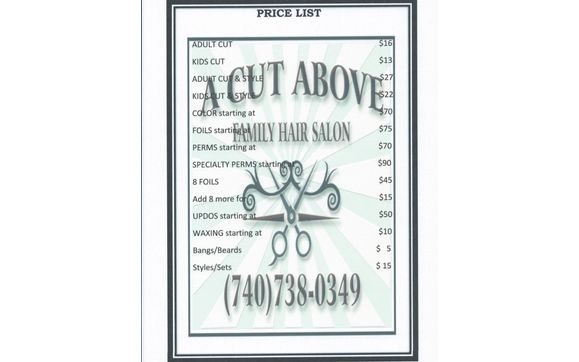 Service List By A Cut Above Family Hair Salon Llc In Martins Ferry Area Alignable